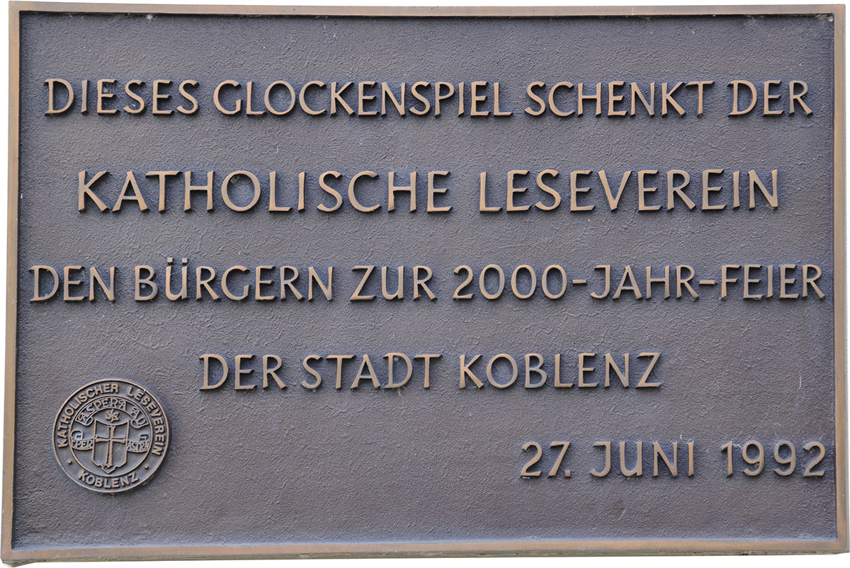 Der damalige Beigeordnete der Stadt Koblenz und Vorstandsmitglied unseres Vereins, Heinz-Dieter Maahs, überraschte den Vorstand mit einer glänzenden Idee: „Wie wäre es dann mit einem Glockenspiel? So etwas besitzt Koblenz doch noch nicht!“ Der Vorstand blickte sich zunächst ratlos an. Dann folgte allseits Zustimmung. Eine gute Idee. Aber ?!? Sofort türmten sich Probleme auf: Größe, Standort, Lieferant und Finanzierung. Interessant ist die Tatsache: „Wo eine Sachbegeisterung besteht, gibt es in der Regel auch einen Weg.“ Die Ärmel im Vorstand wurden hochgekrempelt, Angebote eingeholt, Glockenspiele und Herstellerfirmen besichtigt, Standorte analysiert, Finanzierungen erörtert. Das Ergebnis all dieser Bemühungen ist das heutige Glockenspiel an der Fassade des Johannishauses am Jesuitenplatz 4. Den Auftrag zu Herstellung und Montage erhielt die Firma Ed. Korfhage & Söhne, Turmuhrenfabrik, Glockenspielbau in Melle-Buer. Am 29. Juni 1992, an einem schönen Sommertag, war es dann so weit; Einweihung und Übergabe an den ersten Bürger unserer Stadt und Ehrenmitglied des Kath. Lesevereins, Oberbürgermeister Willi Hörter. Viele Vereinsmitglieder und Bürger der Stadt wollten dieses Ereignis nicht verpassen. Nach der Begrüßung durch unseren Vorsitzenden Dr. Ewald Thul sorgte die Gülser Blaskapelle für eine zünftige musikalische Umrahmung. Die Glockenweihe nahm Peter Superior Mühlenbrock SJ vor. Durch einen kräftigen Luftsprung versuchte er selbst die oberste Glocke in 12 Meter Höhe mit Weihwasser zu erreichen. Spannung lag in der Luft, als unser Glockenspiel zum ersten Mal seine Melodien erklingen ließ.