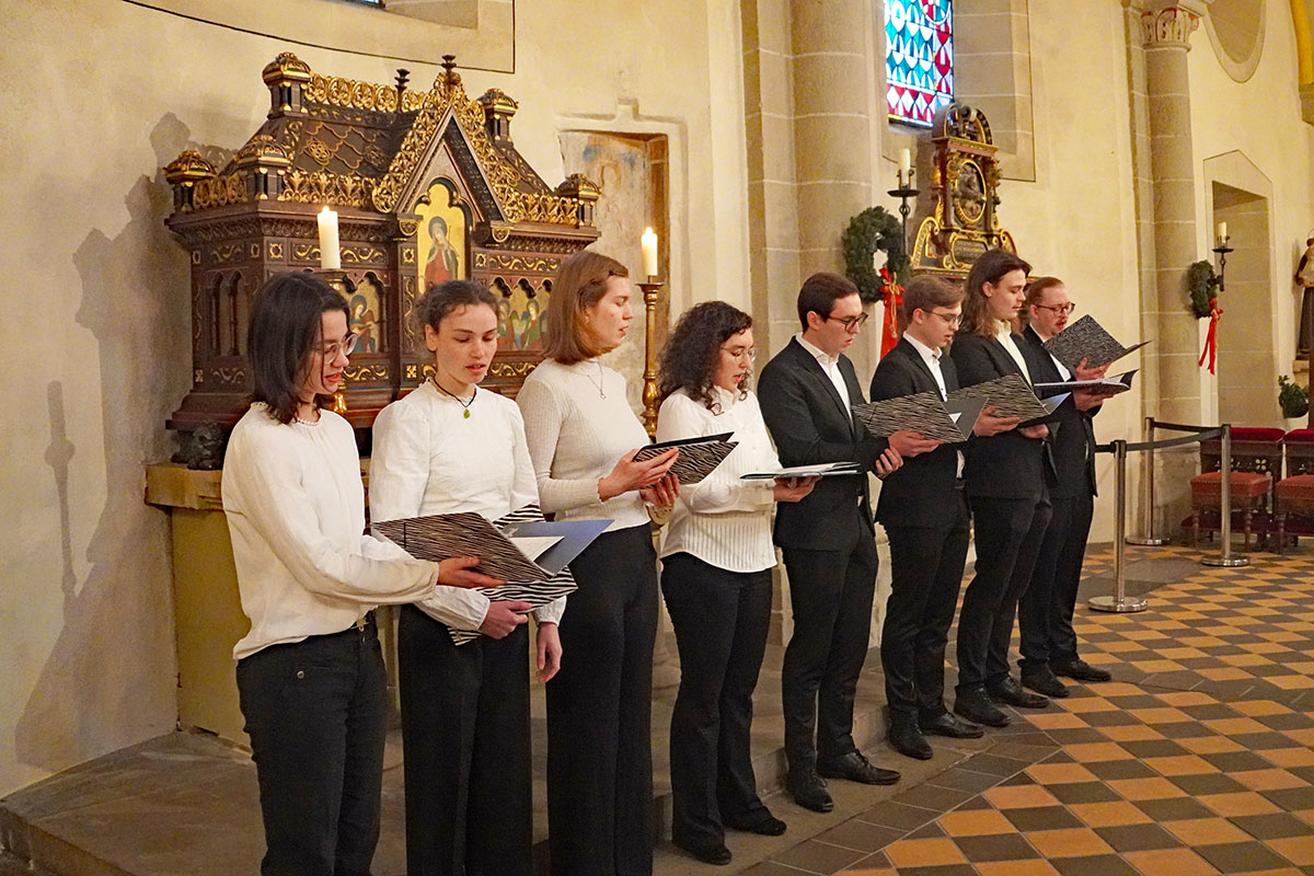 Eine Abordnung der Ritter zum Heiligen Grab zu Jerusalem wohnte der Veranstaltung bei und das Vokalensemble Sankt Kastor begleitete den Gottesdienst musikalisch.
